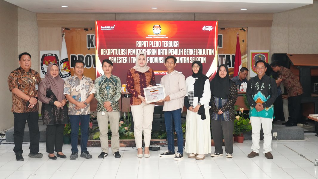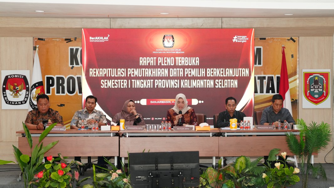 Banjarmasin, kalsel.kpu.go.id – Komisi Pemilihan Umum Provinsi Kalimantan Selatan menggelar Rapat Pleno Terbuka Rekapitulasi Pemutakhiran Data Pemilih Berkelanjutan (PDPB) Semester I Tingkat Provinsi Kalimantan Selatan, bertempat di Aula Kantor KPU Provinsi Kalimantan Selatan pada Jumat (04/07/2025). Rapat pleno tersebut dihadiri oleh Ketua KPU Provinsi Kalimantan Selatan Andi Tenri Sompa, beserta para anggota KPU Provinsi Kalimantan Selatan yakni Arif Mukhyar, M. Fahmi Failasopa, Nida Guslaili Rahmadina, dan Riza Anshari. Hadir pula Sekretaris KPU Provinsi Kalimantan Selatan Mukti Abdulatif Mile, Anggota Bawaslu Provinsi Kalimantan Selatan Thessa Aji Budiono, serta Ketua dan Anggota KPU Kabupaten/Kota se-Kalimantan Selatan. Selain itu, kegiatan ini turut dihadiri oleh perwakilan dari berbagai instansi mitra, seperti Polda Kalimantan Selatan, Korem 101/Antasari, Badan Kesatuan Bangsa dan Politik (Bakesbangpol) Provinsi Kalimantan Selatan, serta Kantor Wilayah Direktorat Jenderal Pemasyarakatan (Kanwil Ditjenpas) Kalimantan Selatan. Pelaksanaan rapat pleno ini merupakan kelanjutan dari Rapat Sinkronisasi Rekapitulasi Pemutakhiran Data Pemilih Berkelanjutan Semester I Tingkat Provinsi Kalimantan Selatan yang telah diselenggarakan bersama KPU Kabupaten/Kota se-Kalimantan Selatan pada hari sebelumnya, Kamis (03/07/2025). Dalam sambutannya, Ketua KPU Provinsi Kalimantan Selatan Andi Tenri Sompa menyampaikan bahwa kegiatan Pemutakhiran Data Pemilih Berkelanjutan (PDPB) merupakan salah satu instrumen penting dalam menjaga integritas data pemilih. “Pelaksanaan Pemutakhiran Data Pemilih Berkelanjutan ini merupakan kegiatan untuk memperbaharui data pemilih berdasarkan DPT Pemilu atau DPT Pemilihan terakhir yang telah disinkronisasikan dengan data kependudukan secara nasional, termasuk data dari luar negeri. Kegiatan ini dilaksanakan secara berkala untuk memastikan bahwa data pemilih selalu diperbarui, akurat, dan sesuai dengan kondisi terkini,” ujarnya. Sebagai hasil dari kegiatan ini, KPU Provinsi Kalimantan Selatan menetapkan dan menerbitkan Berita Acara Nomor: 133/PP.07-BA/63.2025 tentang Rekapitulasi Pemutakhiran Data Pemilih Berkelanjutan Semester I Tahun 2025, yang dapat diakses melalui tautan berikut: [ KLIK DI SINI ] Kegiatan PDPB menjadi bagian dari upaya strategis KPU dalam menjamin kualitas dan akurasi daftar pemilih, sekaligus sebagai bentuk komitmen terhadap keterbukaan dan profesionalitas penyelenggaraan pemilu yang berintegritas. ....