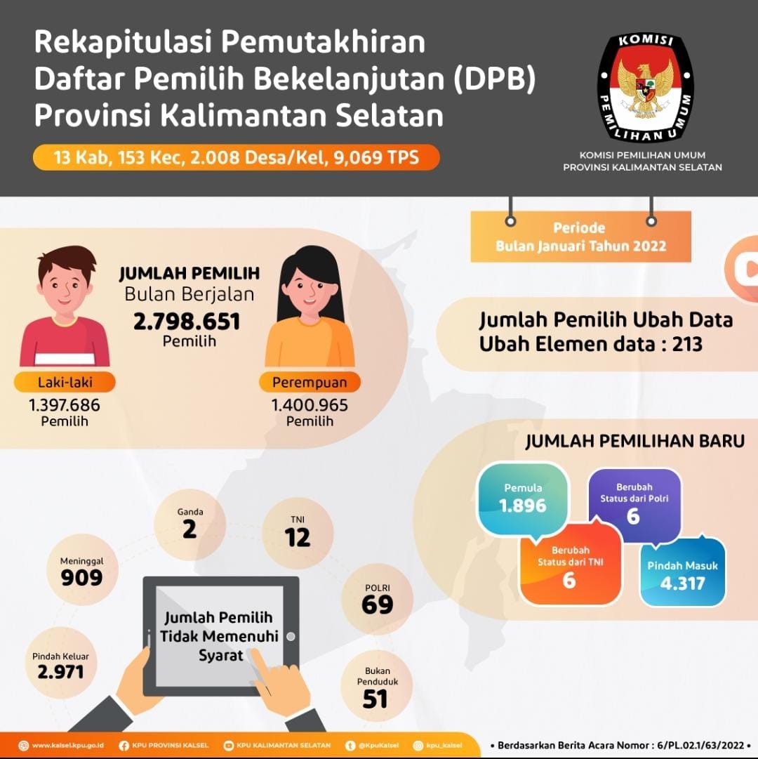 Banjarmasin, kalsel@kpu.go.id - Berdasarkan ketentuan Peraturan Komisi Pemilihan Umum Nomor 6 Tahun 2021 tentang Pemutakhiran Data Pemilih Berkelanjutan, maka KPU Provinsi Kalimantan Selatan melaksanakan Rapat Koordinasi Daftar Pemilih Berkelanjutan Periode Bulan Januari Tahun 2022 pada Selasa (8/2), dengan hasil sebagai berikut: [KLIK DISINI]