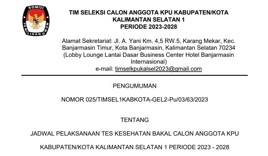 Penyerahan dokumen formulir masukan dan tanggapan masyarakat sebagaimana dimaksud diatas dapat disampaikan kepada Tim Seleksi Calon Anggota KPU Kabupaten/Kota Kalimantan Selatan 2 melalui: